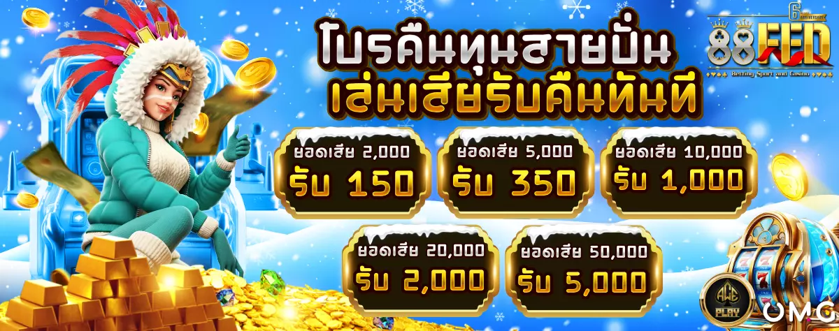 • คืนยอดเสียรายสัปดาห์ 10% สำหรับผู้ที่มียอดเสียในสัปดาห์นั้น ระบบจะคืนเครดิตอัตโนมัติทุกวันจันทร์